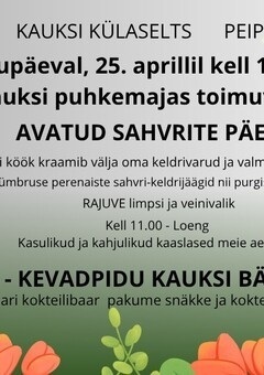 2.04.2026 on Alutaguse Huvikeskuse asutustes tööpäev lühendatud 1 h võrra.