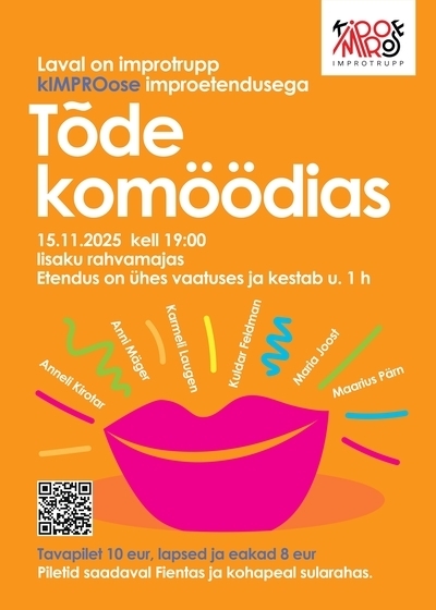 Saalis kustub valgus, eesriie avaneb ning lavale tulevad näitlejad. Kõik, mis laval sündima hakkab on uus ja kordumatu. Näitlejad on valmis looma maailma, mis on täis lusti ja nalja. Improteater on teatrivorm, kus lavateos luuakse näitlejate koostöös selle esitamise käigus. Etenduse tegevustik, karakterid, asukohad ja dialoog mõeldakse välja laval esinemise hetkel ja vaatajate kaasabil! Ka laulul on laval oma koht!