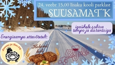 SUUSAMATK 24.02.2026, 15:00 - 17:00, Iisaku kooli parklast Ülevaade Igaühele sobiva tempo ja distantsiga Energiaamps ettevõtetelt Lammas ja Roos OÜ, Heleni Leib ja RaJuVe