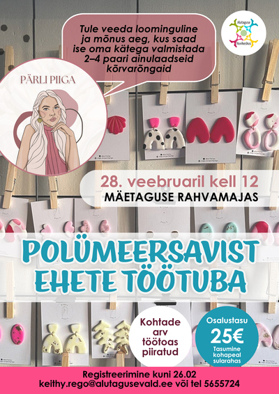 Tule osale loomingulises töötoas, mille käigus valmib 2-4 paari ainulaadseid kõrvarõngaid.