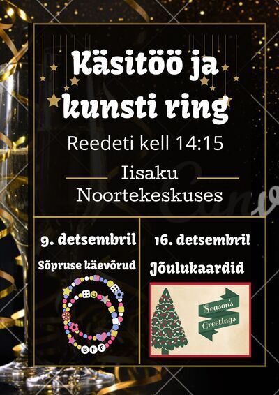 Iisaku noortekeskuse aktiivne noor Amanda korraldab reedeti kell 14:15 kunsti ja käsitöö ringi, mille raames valmistatakse 16. detsembril jõulukaarte.