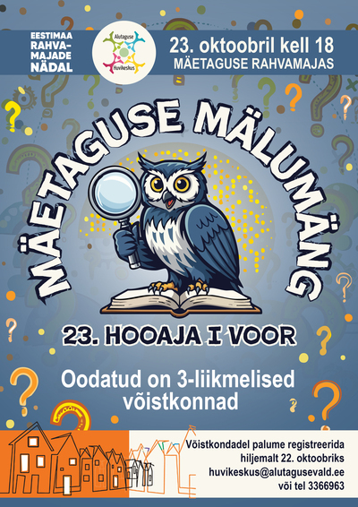 Oodatud on 3-liikmelised võistkonnad. Võistkondadel palume registreerida hiljemalt 22. oktoobriks keithy.rego@alutagusevald.ee tel 3366960.