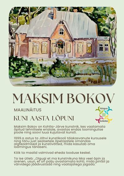 Maksim Bokovi maalinäitus 01.11.2025, 10:00 - 31.12.2025, 17:00, Kurtna seltsimaja Korraldaja Kurtna seltsimaja