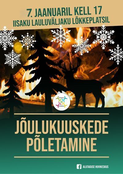 Jõulukuuskede põletamine 07.01.2026, 17:00 - 00.00.0000, 18:00, Iisaku lauluväljakul Kontakt Merle Pikhoff