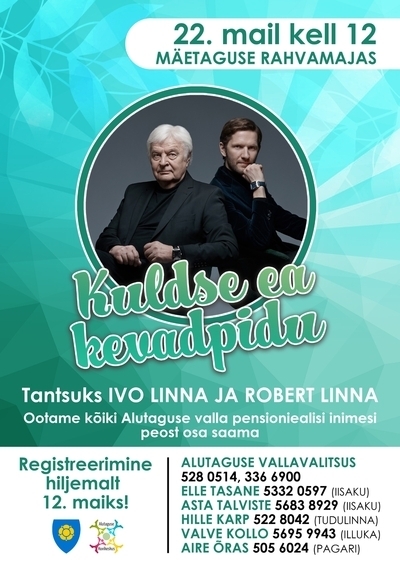 Registreerimine hiljemalt 12. maiks. Alutaguse Vallavalitsus 5280514 ja 3366900, Elle Tasane 53320597 (Iisaku) ja Asta Talviste 56838929 (Iisaku), Hille Karp 5228042 (Tudulinna), Valve Kollo 56959943 (Illuka), Aire Õras 5056024 (Pagari)