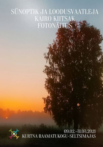 Sünoptik ja loodusvaatleja Kairo Kiitsak fotonäitus 02.03.2021, 10:00 - 31.03.2021, Kurtna raamatukogu-seltsimaja Kontakt kurtnark@alutagusevald.ee +3723392486