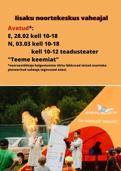 ESMASPÄEVANE LAHTIOLEKUAEG MUUDETUD! Koolivaheajal Iisaku noortekeskuses