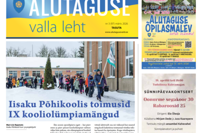 23.03.2026Alutaguse valla märtsikuu 2026 ajalehe paberlehed jõudsid postkastidesse. Veebilehte saab lugeda SIIT -